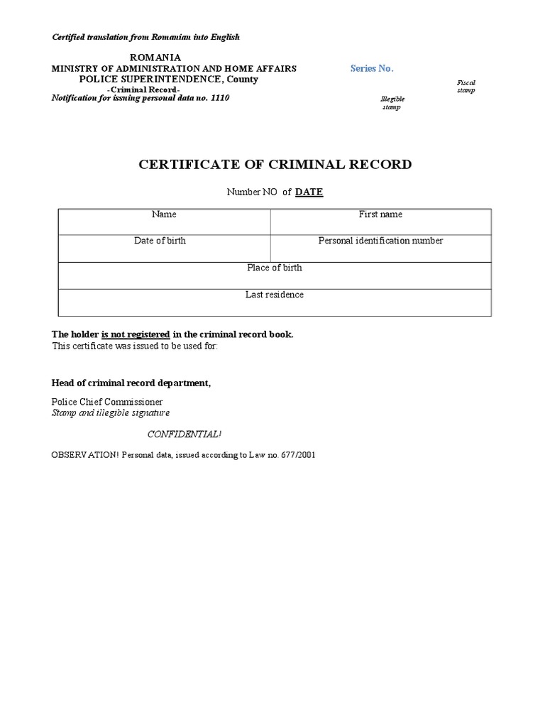 Cerere de eliberare a certificatului de cazier fiscal (omfp 2696/2011) formular 502. Se utilizează la eliberarea unui certificat de cazier fiscal pentru: Totodată, el are scopul de a preveni și de a combate. Demande d'un extrait de casier judiciaire retrait de l'extrait de casier judiciaire obtention d'un certificat de domicile obtention d'un certificat de résidence achat de timbres fiscaux dépôt du dossier timbre fiscal de 200. Certificatul de cazier fiscal este valabil timp de 30 de zile de la data eliberarii lui pentru persoanele juridice și 90 de zile, pentru persoanele fizice, și numai in scopul pentru care a fost eliberat.