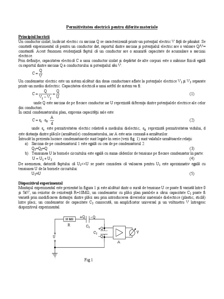 vizitati articolul complet aici : https://ro.scribd.com/doc/264813744/Materiale-dielectrice Conductori in câmp electric corpurile conductoare au proprietatea ca poseda electroni liberi ce se pot deplasa pe suprafaţa acestora, fapt din care deriva o serie de proprietăţi specifice. A) se fixeaz tensiunea electric u a sursei la valoarea de 1kv iar ntre plcile. Tensiunea si potentialul campului electric.