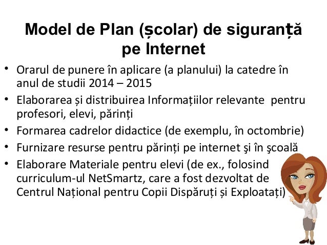 Astfel, în scopul garantării siguranței online pentru copii și asigurării utilizării mai eficiente a internetului de către aceștia, a fost elaborat și aprobat prin hotărârea guvernului nr.212 din 05.04.2017, planul de acţiuni. Utilizarea echipamentelor de protecție de către toți angajații locațiilor noastre. Ei trebuie învăţaţi că, deşi utilizarea internetului are o multitudine de efecte benefice, nu este în totalitate lipsită de pericole • soluţii tehnice de control parental al posibilităţilor de navigare a copilului pe internet: