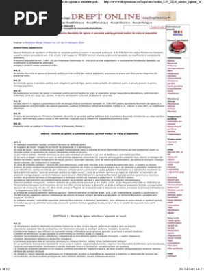 Analizând textul ordinului 119/2014 al ministrului sănătății, pentru aprobarea normelor de igienă și sănătate publică privind mediul de viață al 15 din normele de aplicare a ordinului ministrului sănătății 119/2014, concluzionăm fără tăgadă că ultimele prevederi legale sunt nule de drept și vin în. Văzând referatul de aprobare al direcţiei politica medicamentului şi a dispozitivelor medicale nr. 119 din 4 februarie 2014 pentru aprobarea normelor de igien ă şi s ănătate public ă privind mediul de via ţă al popula ţiei emitent:
